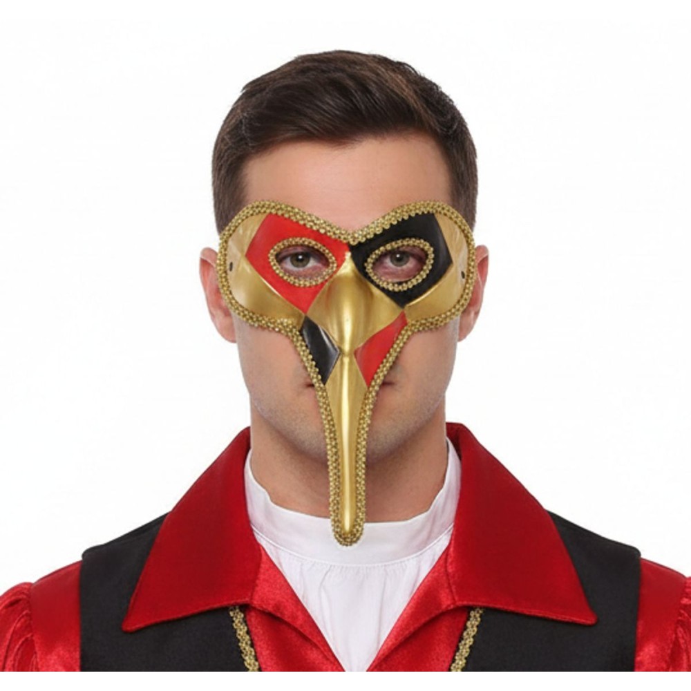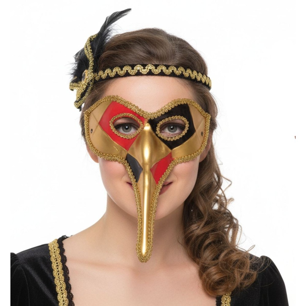 Krásná benátská škraboška s dlouhým nosem je ideálním karnevalovým doplňkem, který dodá vašemu kostýmu tajemný a elegantní vzhled. Perfektně se hodí na maškarní plesy nebo stylové párty, kde zaručeně upoutá pozornost a podtrhne vaši originalitu.