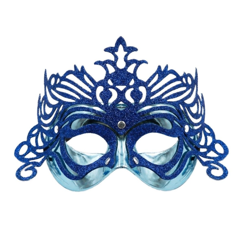 Škraboška modrá maska benátská s korunkou