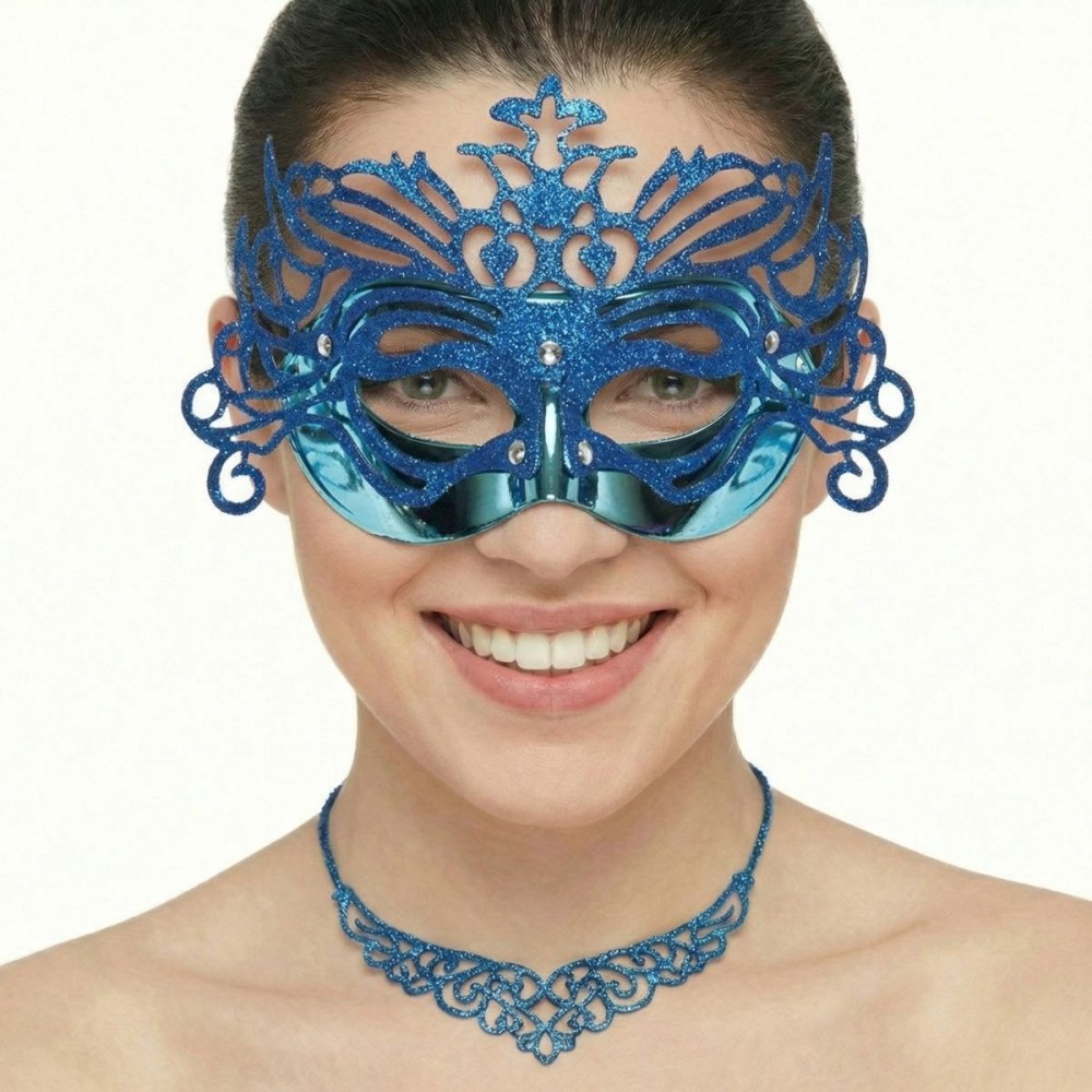 Elegantní benátská modrá plastová maska s detailním ornamentem je ideálním doplňkem pro každou karnevalovou příležitost. Skvěle doplní váš kostým a promění vás v hvězdu večírku, přitahujíc pozornost svou jedinečnou elegancí.