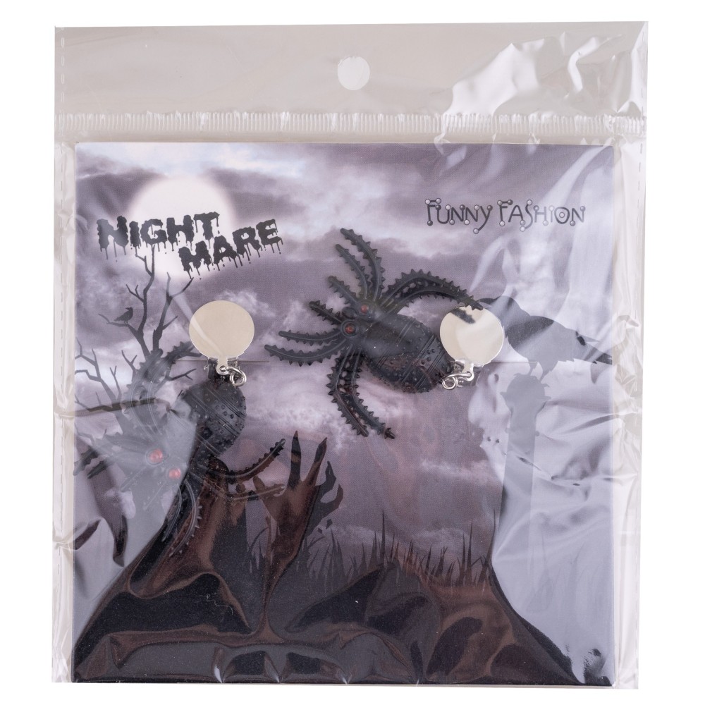 Karneval doplněk - náušnice klipsy s přívěškem černý pavouk