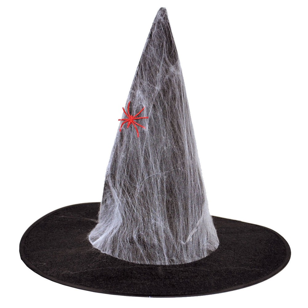 Špičatý klobouk s pavučinou a umělým pavoukem v různých barvách je perfektní karnevalový doplněk pro každou čarodějnici, který dodá vašemu kostýmu autentický a strašidelný vzhled. Tento klobouk je ideální pro Halloween párty nebo pálení čarodějnic, díky svému jedinečnému designu a dospělé velikosti s vnitřním obvodem 58 cm.