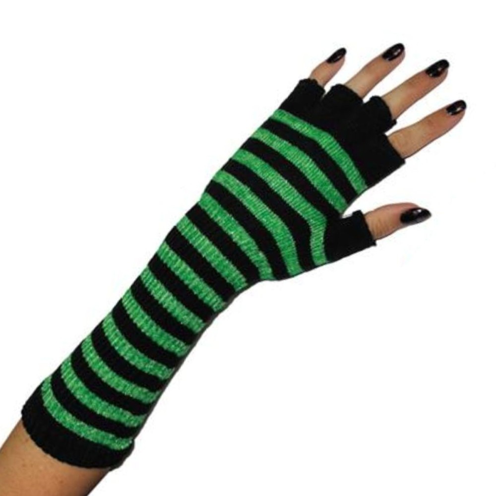 Pruhované černo zelené rukavice návleky na ruce o délce 27 cm jsou skvělým karnevalovým doplňkem. Perfektně se hodí k maškarnímu kostýmu čarodějnice nebo na stylovou párty.
