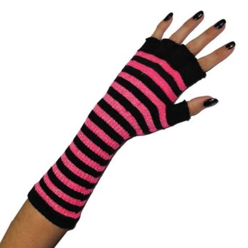 Pruhované černo růžové rukavice návleky na ruce o délce 27 cm jsou skvělým karnevalovým doplňkem. Perfektně se hodí k maškarnímu kostýmu čarodějnice nebo na stylovou párty.