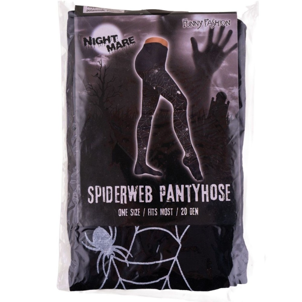 Černé dámské punčocháče s potiskem motivem pavouka a pavučiny jsou ideálním doplňkem pro strašidelné kostýmy na Halloween nebo tematické večírky. Vyrobené z odolného polyamidu, poskytují pohodlí a styl v dospělé velikosti.