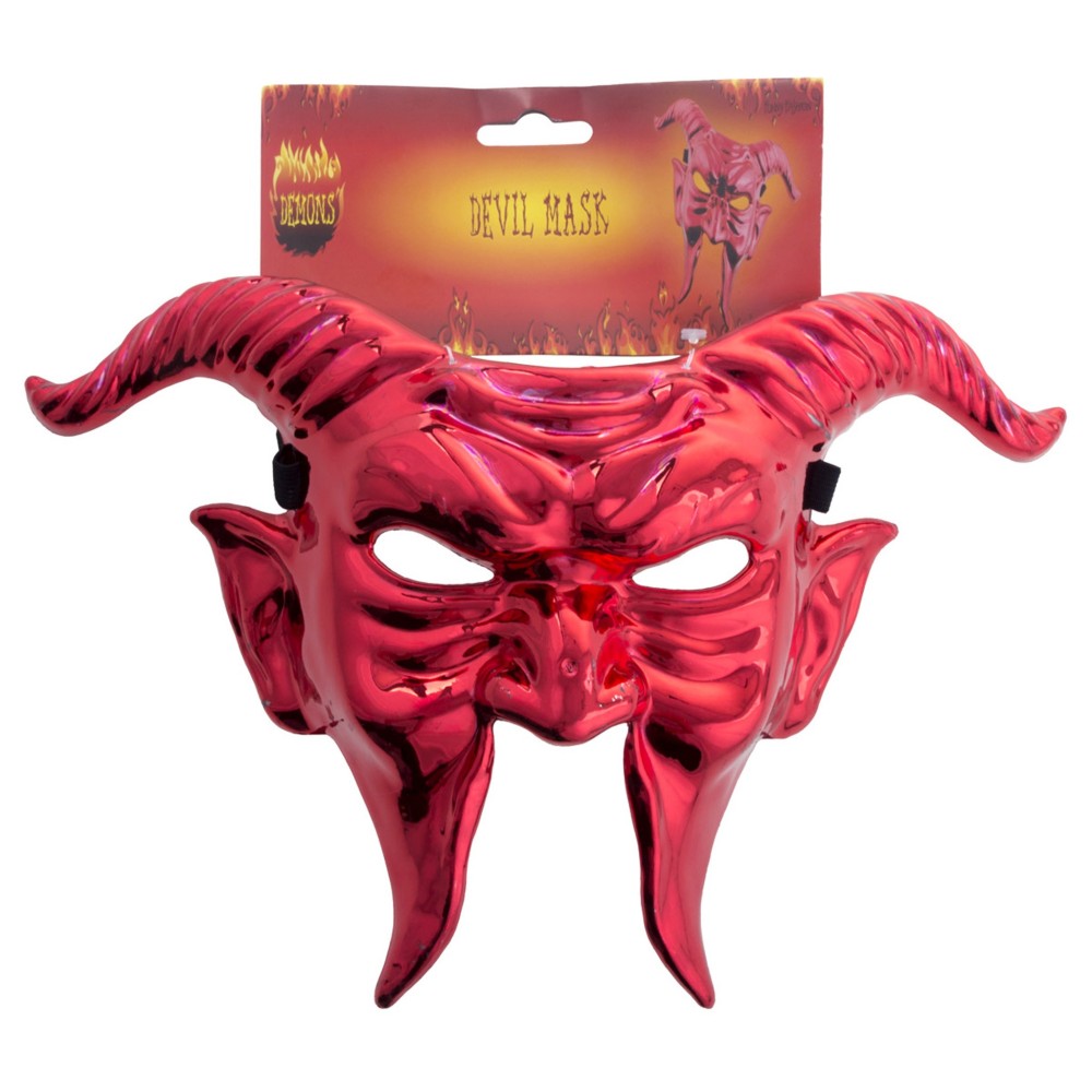 Vyrobena z pevného plastu pro dlouhou životnost a opakované použití. Rozměr 38 × 22 cm zajišťuje působivý, rudě zbarvený vzhled s ostrými liniemi, přitom je maska lehká a příjemná na nošení.