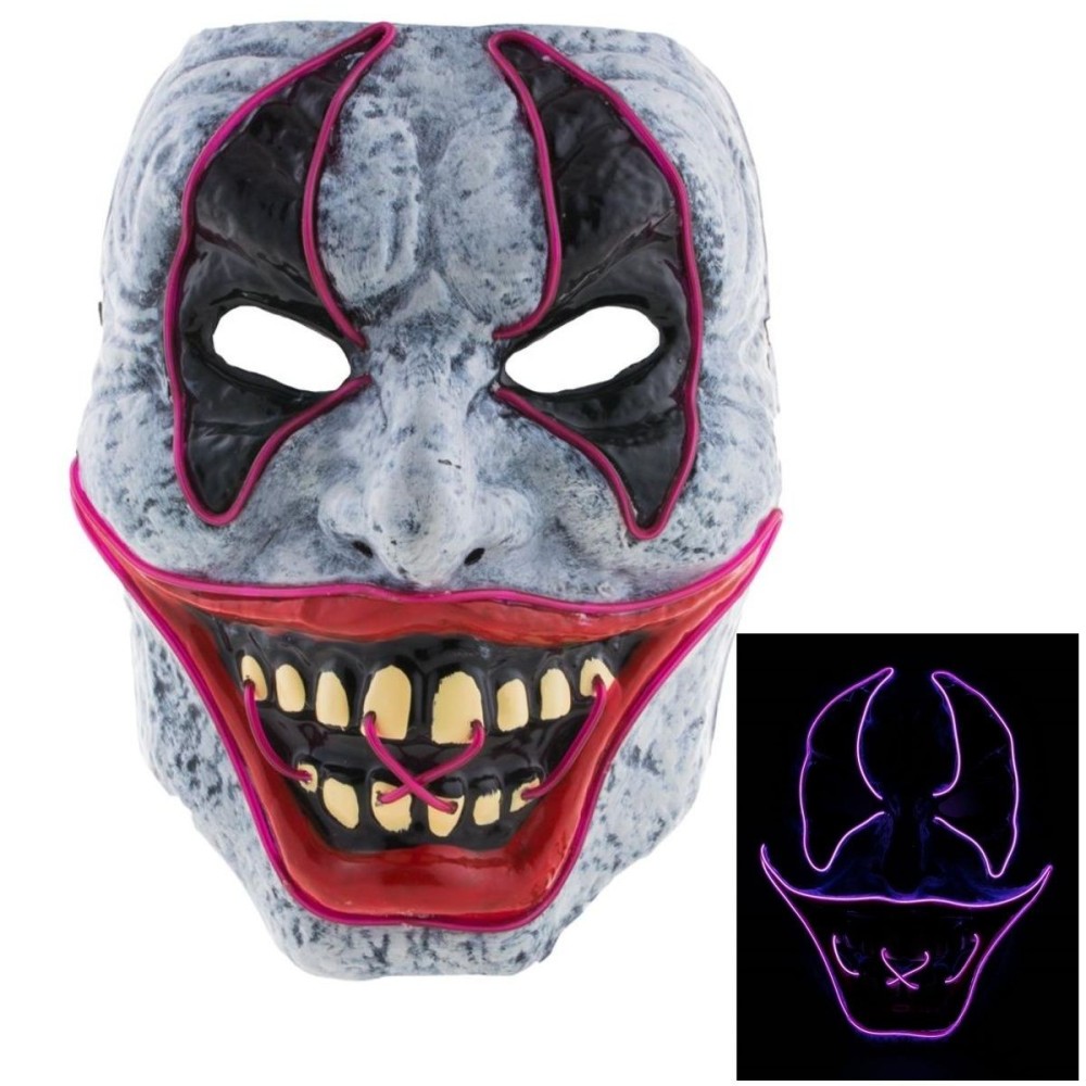 Hororová plastová maska se světelným efektem je perfektním doplňkem pro každou strašidelnou příležitost, ať už jde o Halloween, tematickou teror párty nebo kostým vražedného klauna. Maska nabízí tři různé programy svícení, které se jednoduše přepínají pomocí tlačítka, což umožňuje efekt svícení, blikání nebo rychlého problikávání, čímž zaručuje, že budete vždy středem pozornosti.