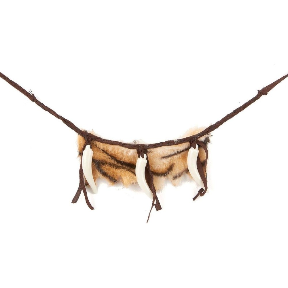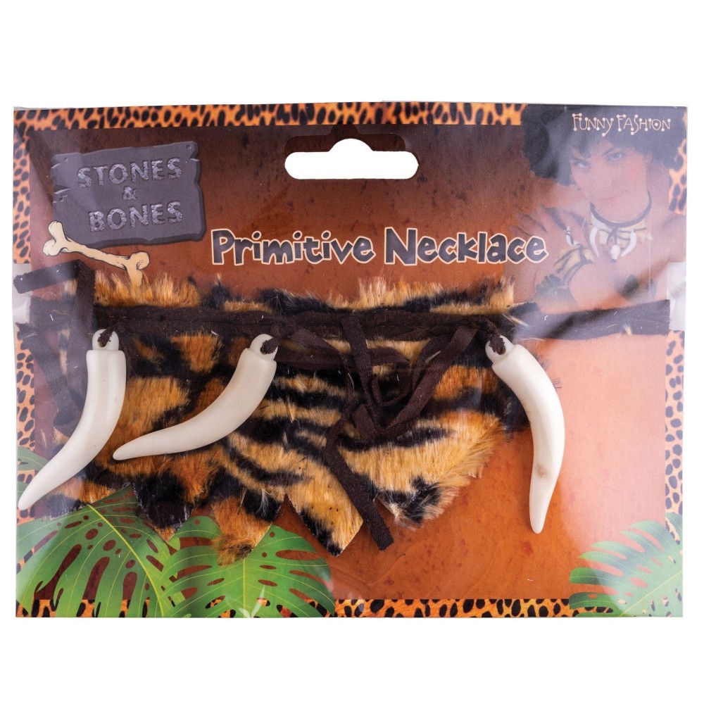 Ozdoba krku náhrdelník z umělé kožešiny a zubu divokého zvířete je ideálním karnevalovým doplňkem pro kostýmy domorodce, lovce nebo pračlověka. Skvěle se hodí na pravěké tematické párty, kde dodá vašemu vzhledu autentický a divoký nádech.