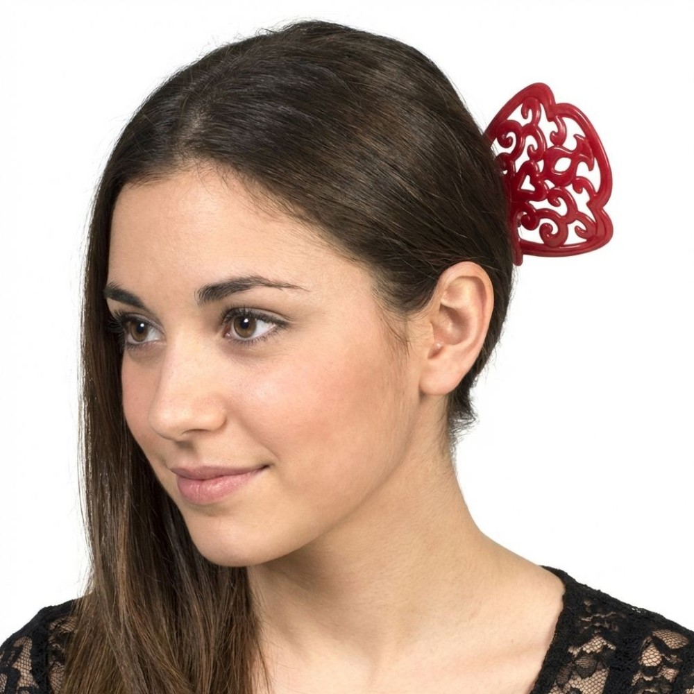 Španělský červený hřeben ozdobná spona do vlasů o délce 14,5 cm je perfektní karnevalový doplněk pro každou flamenco tanečnici či Španělku. Skvěle se hodí na maškarní kostýmy, například pro oslavu Dia de los Muertos nebo na stylové párty.