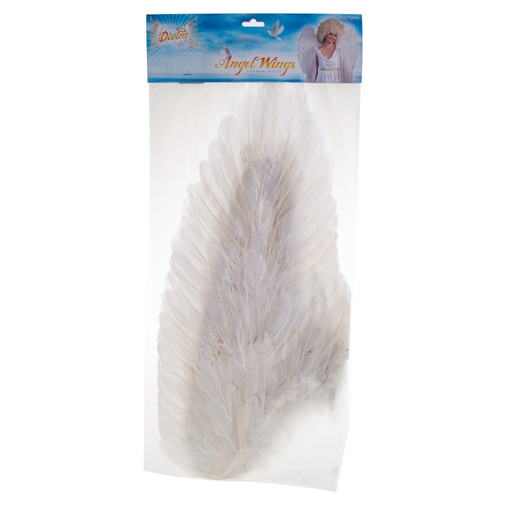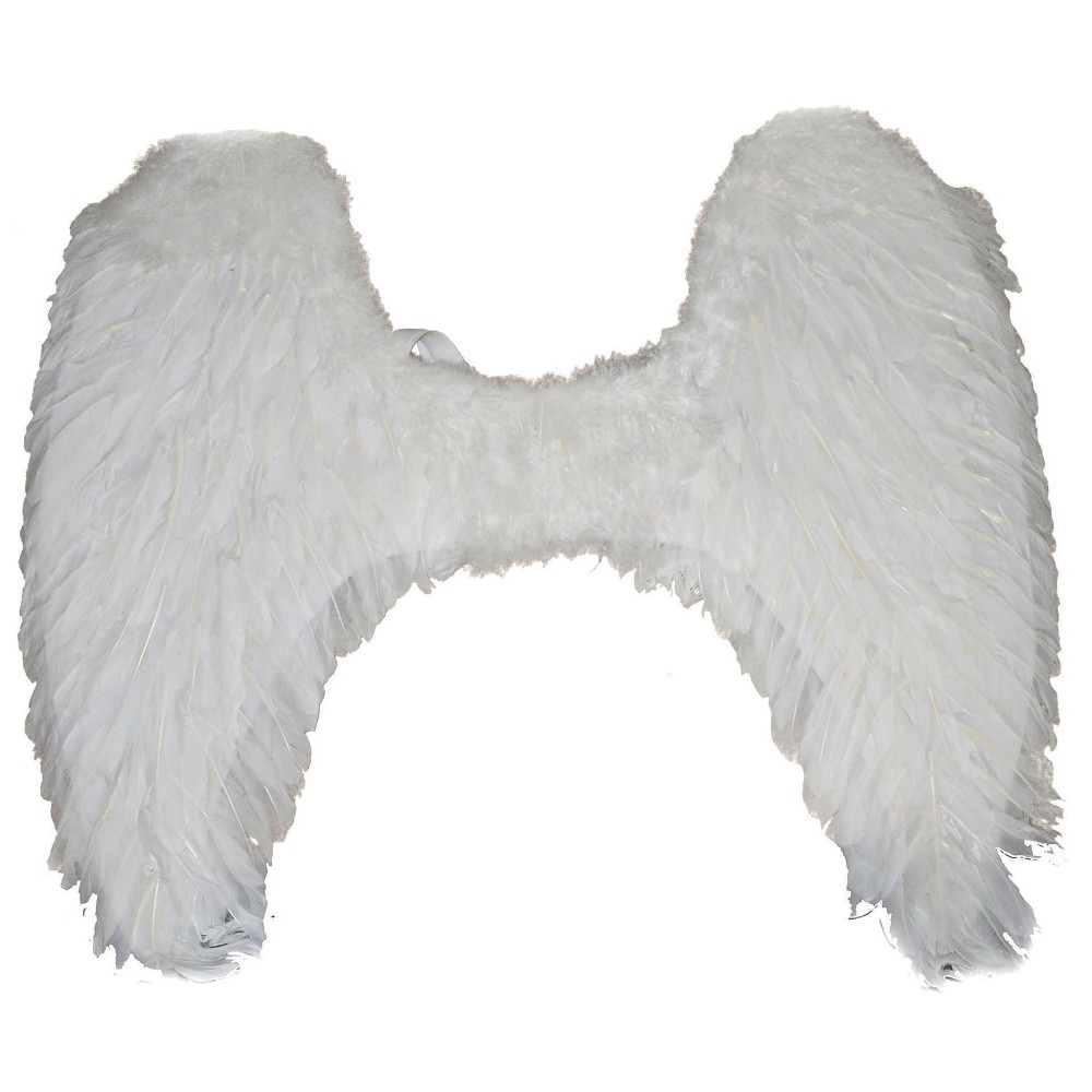 Karnevalový doplněk - bílá andělská křídla z peří - Tato elegantní křídla jsou perfektním doplňkem pro kostým anděla, ideální pro maškarní plesy, vánoční akce nebo Mikulášskou nadílku. S rozměry přibližně 73 x 63 cm poskytují realistický a působivý vzhled, který zaujme na první pohled.