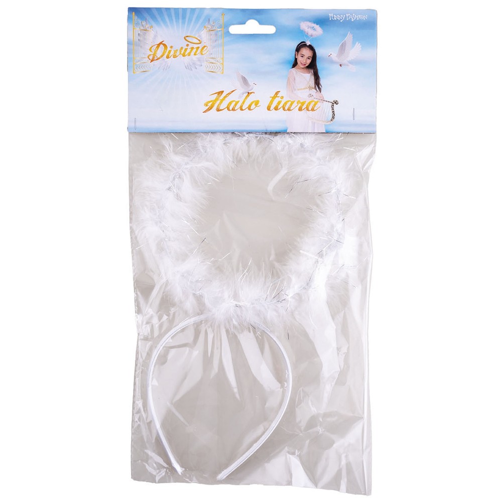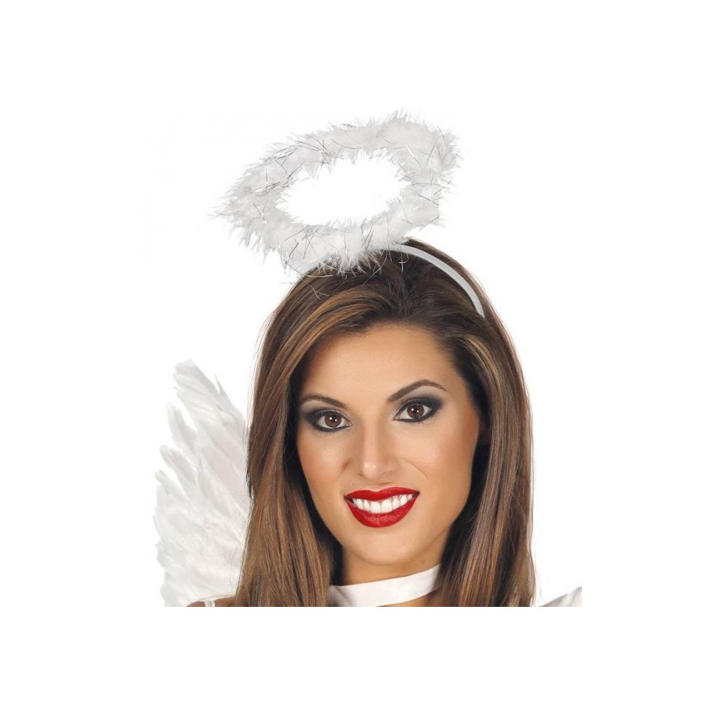 Svatozář anděl - Vyrobena z bílého peří, ideální doplněk pro andělský kostým na karneval či tématickou párty.