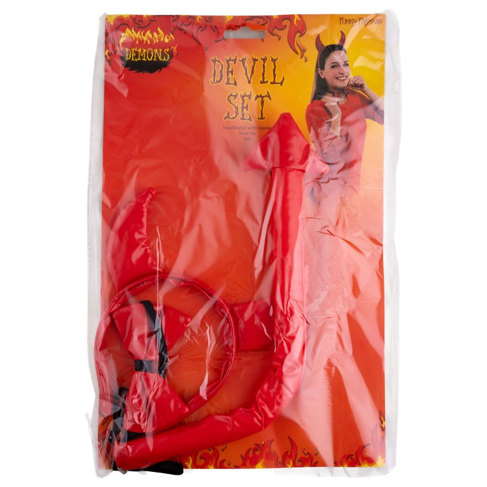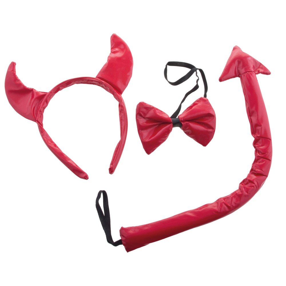 Karnevalový set čert - rohy, vidle a ocas, ideální pro kompletní čertovský kostým na karneval či...