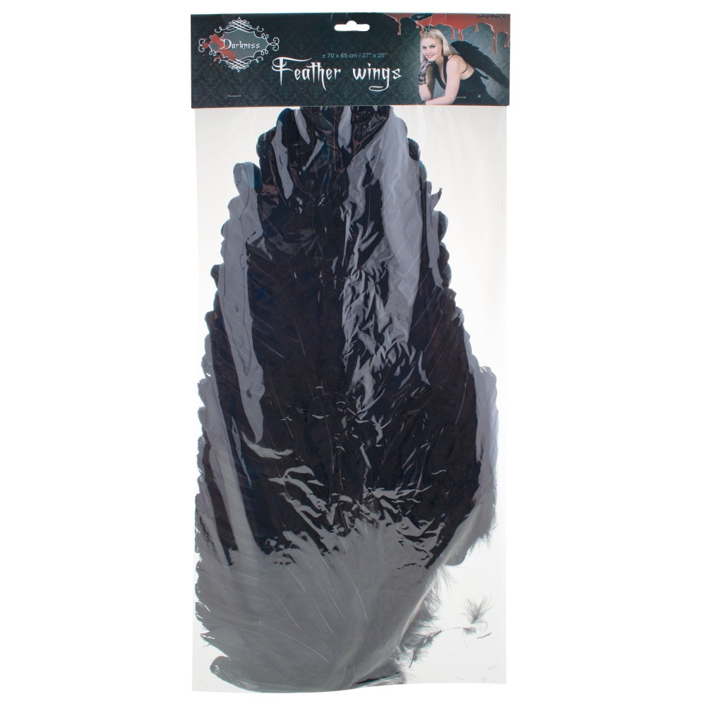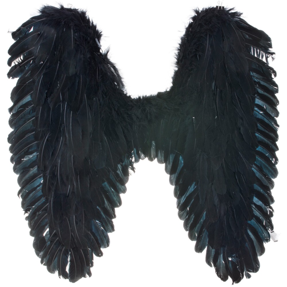 Velká křídla s černým peřím jsou výrazný karnevalový doplněk, který skvěle dotvoří kostým upíra, padlého anděla nebo samotné smrti a rozzáří každou Halloween či horor party.