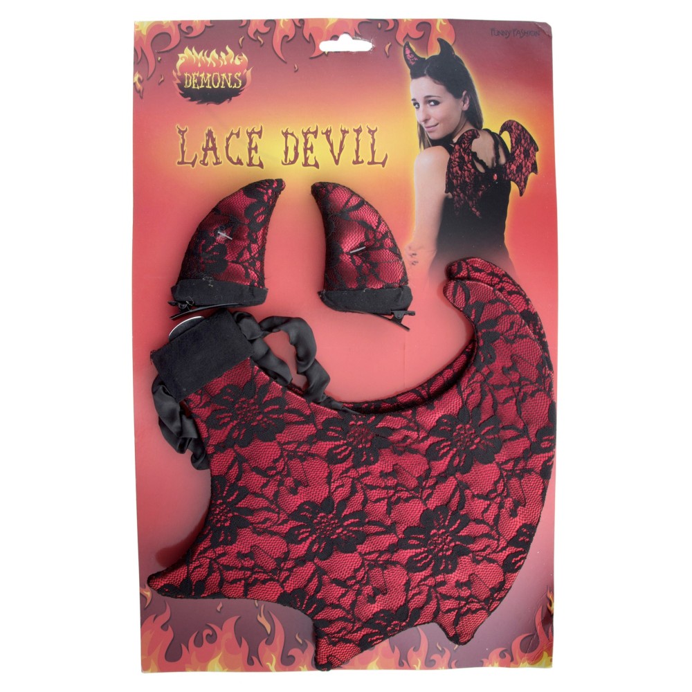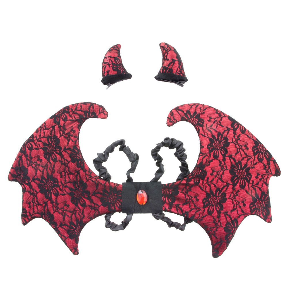 Sada čertice – krásně zdobené rohy na sponkách a křídla na gumičky; perfektní karnevalový doplněk na Mikuláše, maškarní i párty.