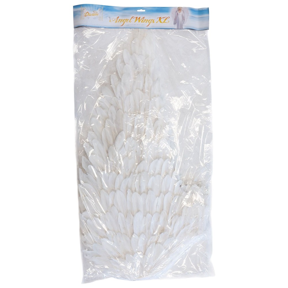 Obrovská bílá andělské křídla, vyrobená z peří, jsou perfektní volbou pro každého, kdo chce přidat svému kostýmu dotek elegance a mystiky. S impozantními rozměry 120 x 115 cm tato křídla zaručeně upoutají pozornost na jakékoli akci.