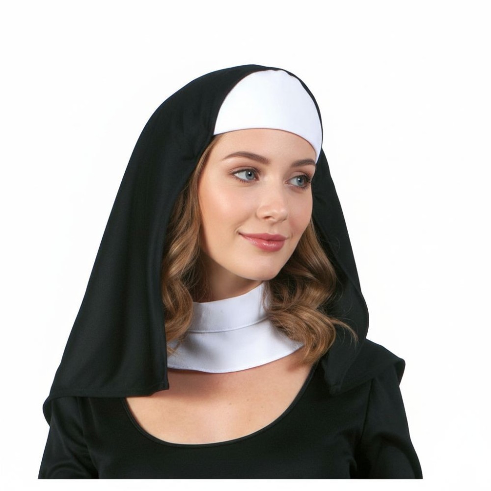 Pokrývka hlavy a bílý límec jsou ideálním karnevalovým doplňkem pro kostým řádové sestřičky. Tento set dodá vašemu převleku autentičnost a eleganci, což z něj dělá skvělou volbu pro tematické večírky nebo maškarní plesy.