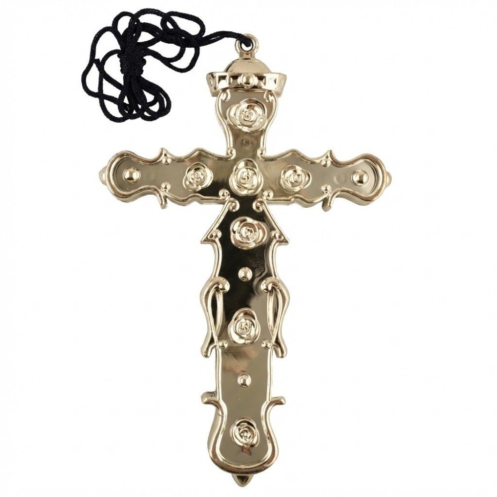 Zlatý plastový kříž na krk je vynikajícím doplňkem, který dodá vašemu kostýmu kněze, Mikuláše, kardinála nebo jeptišky autentický a výrazný vzhled. Díky své velikosti 14 cm se stává nepřehlédnutelným prvkem, který dokonale doplní váš outfit na maškarním plese, Mikulášské nadílce nebo stylové párty.