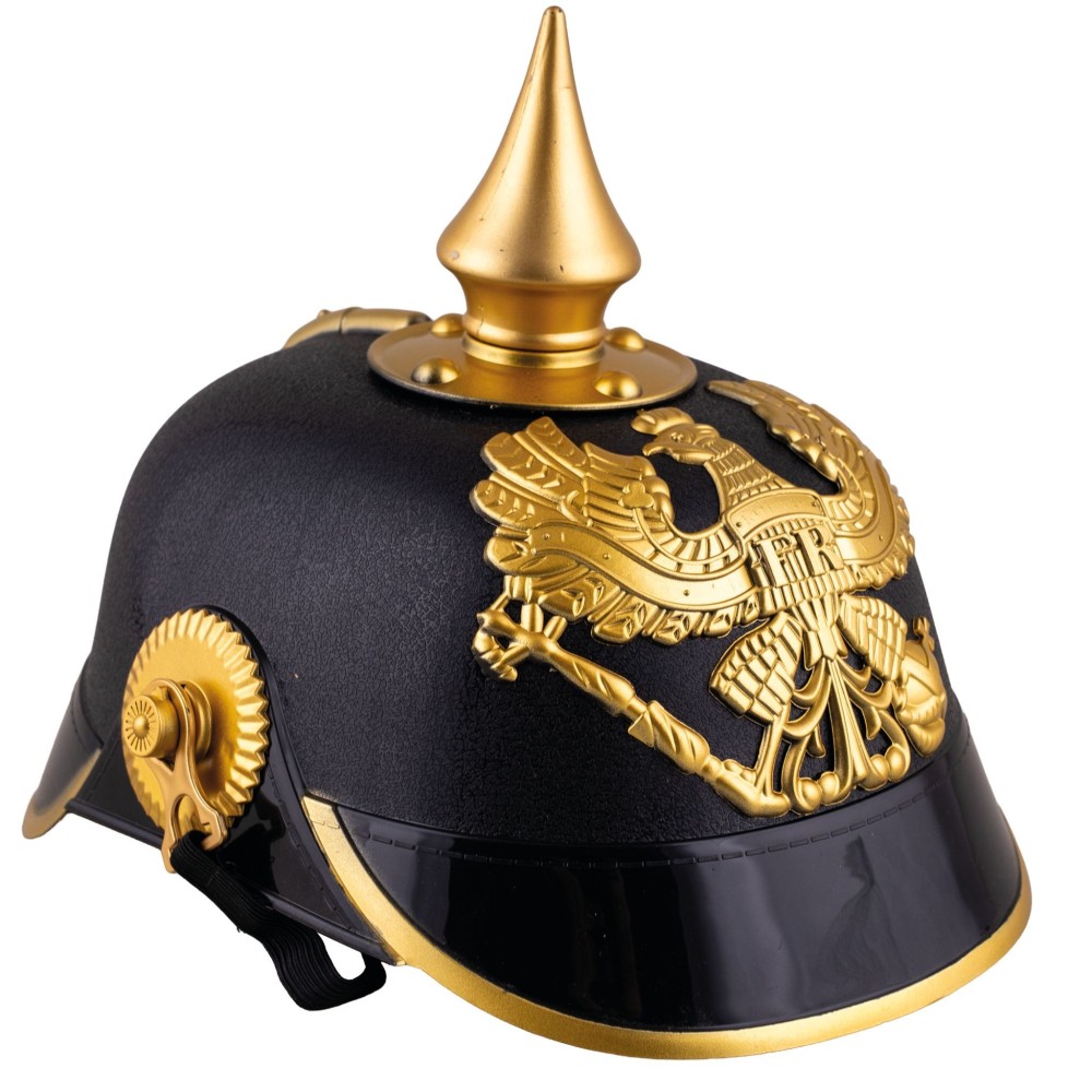 Historická vojenská helma se zlatým zdobením je elegantním karnevalovým doplňkem, který skvěle doplní kostým vojáka nebo policisty. Je navržena v dospělé velikosti, což z ní činí ideální volbu pro stylové párty a tematické akce.