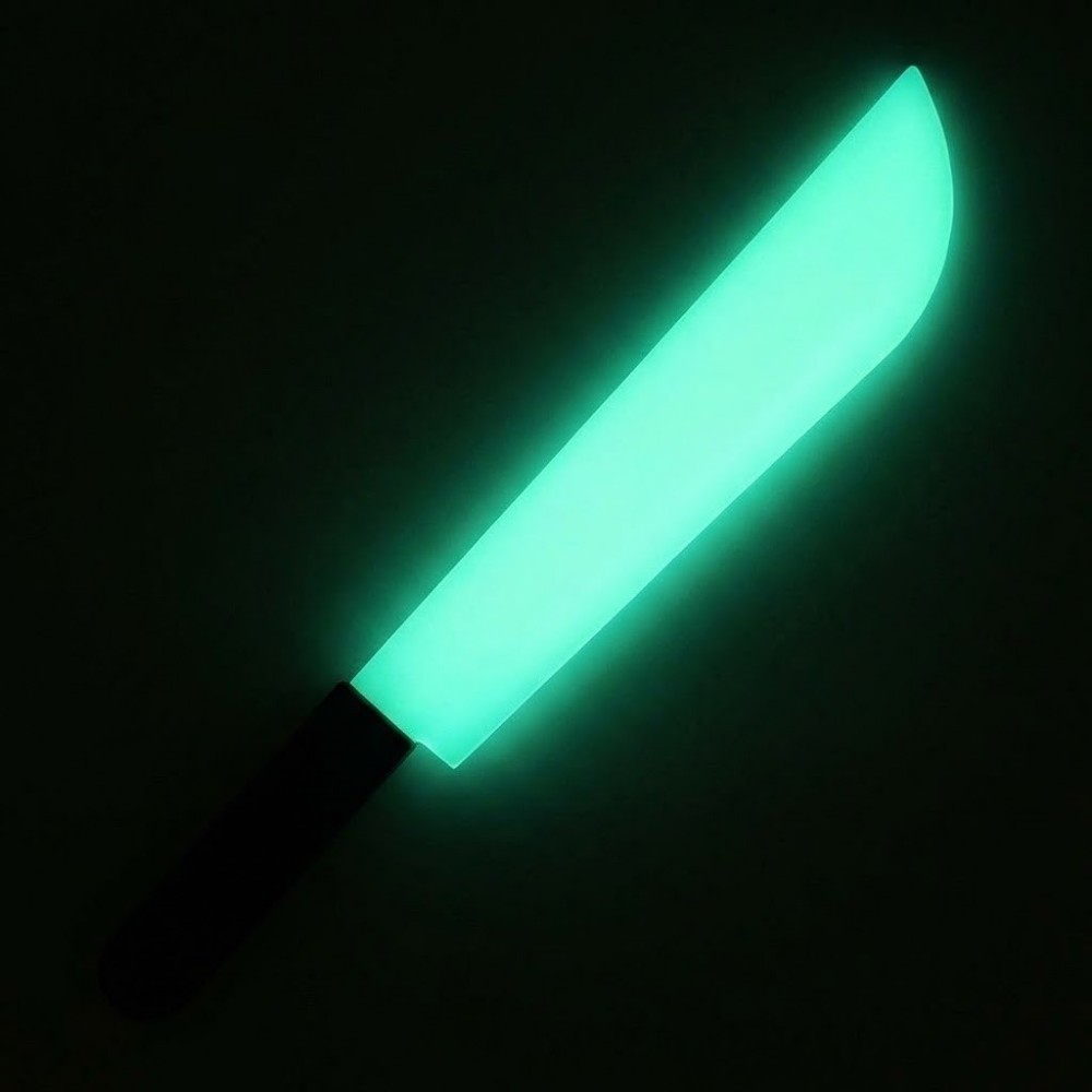 Ve tmě díky fosforeskující barvě čepel září. Skvěle se hodí na Halloween nebo hororové párty, kde dodá vašemu převleku autentický a děsivý vzhled.