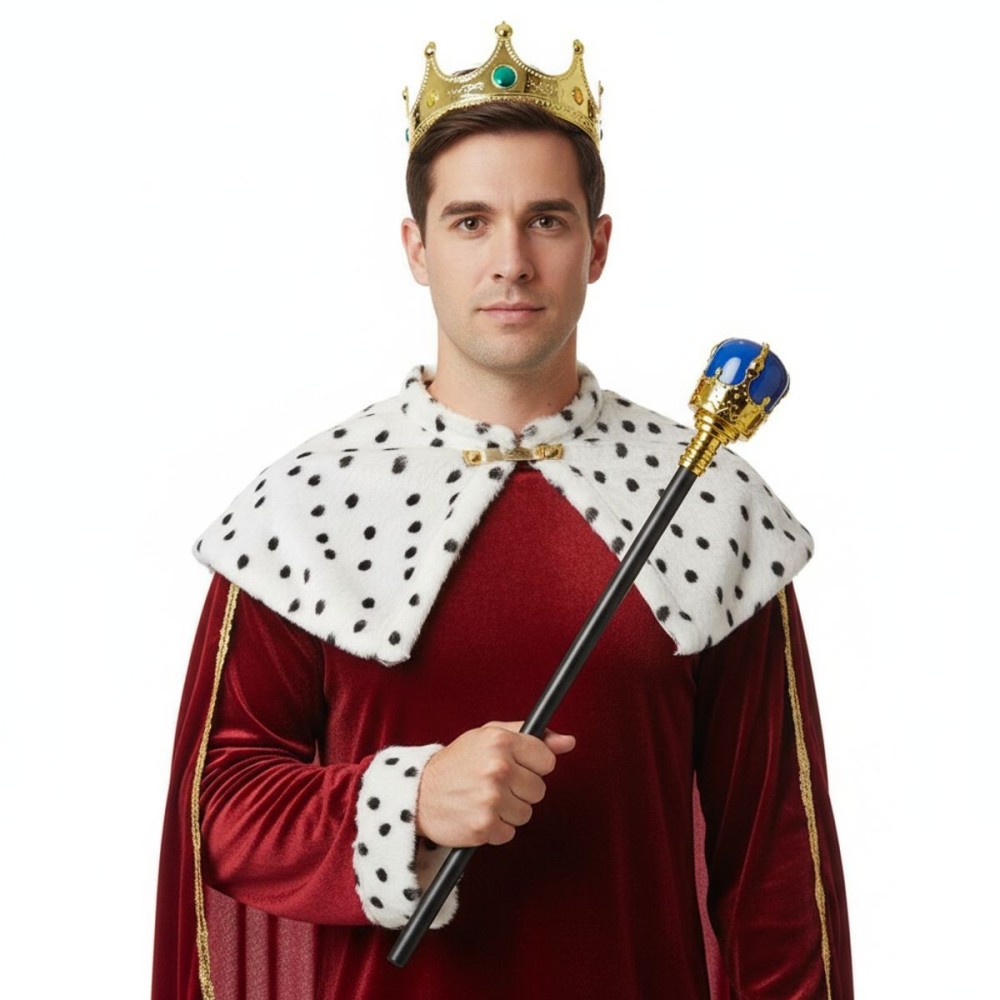 Plastové žezlo s korunkou na špici je dokonalým karnevalovým doplňkem, který dodá vašemu kostýmu krále nebo královny autentický a majestátní vzhled. S délkou cca 48 cm je toto žezlo navrženo tak, aby bylo snadno ovladatelné a pohodlné na nošení, a přitom vypadalo impozantně.