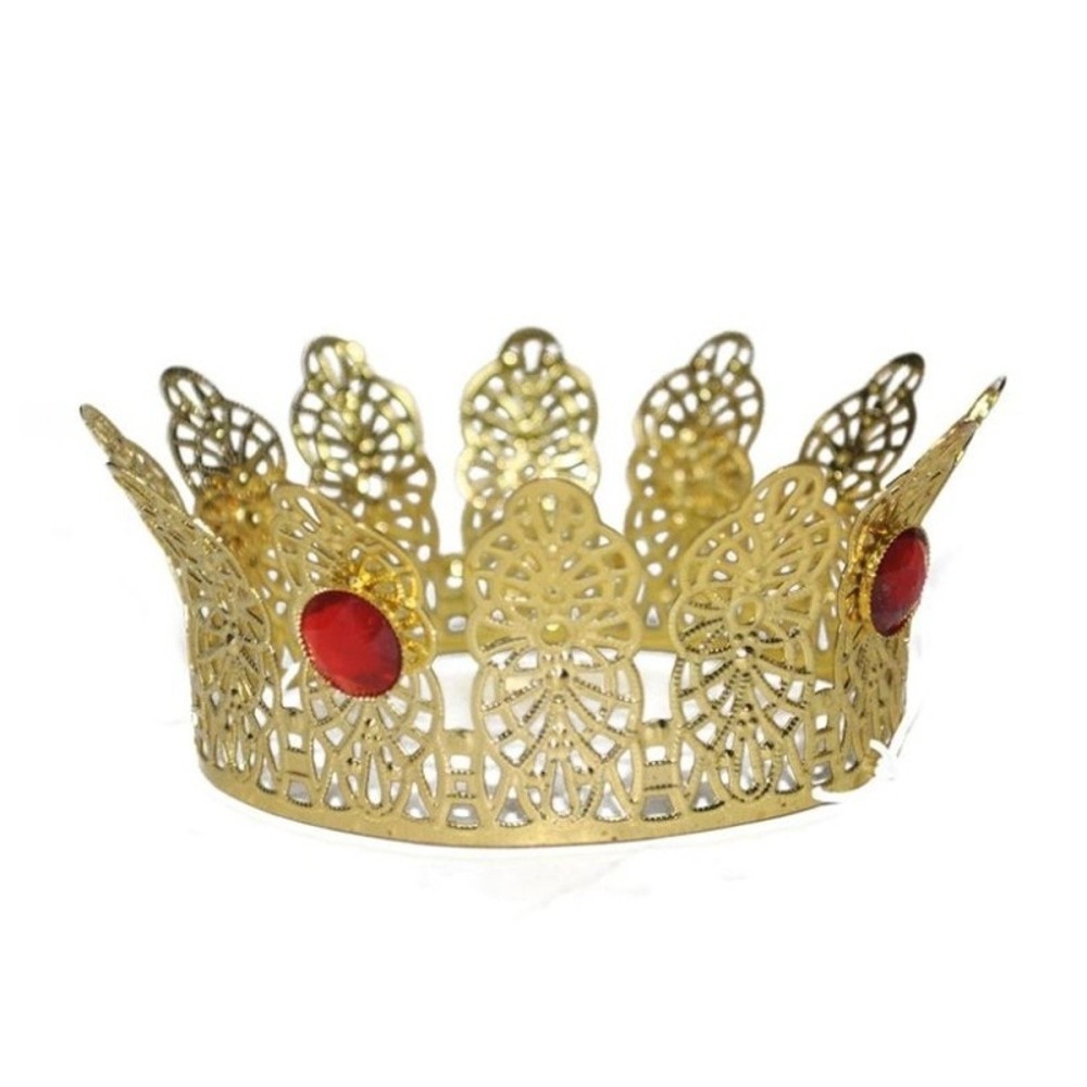 Kovová korunka ve zlaté barvě, zdobená zářivými červenými kameny, představuje vynikající karnevalový doplněk, který dodá vašemu kostýmu královský a elegantní vzhled. Tato korunka je navržena tak, aby upoutala pozornost svým luxusním designem, který evokuje vznešenost a pohádkovou atmosféru.