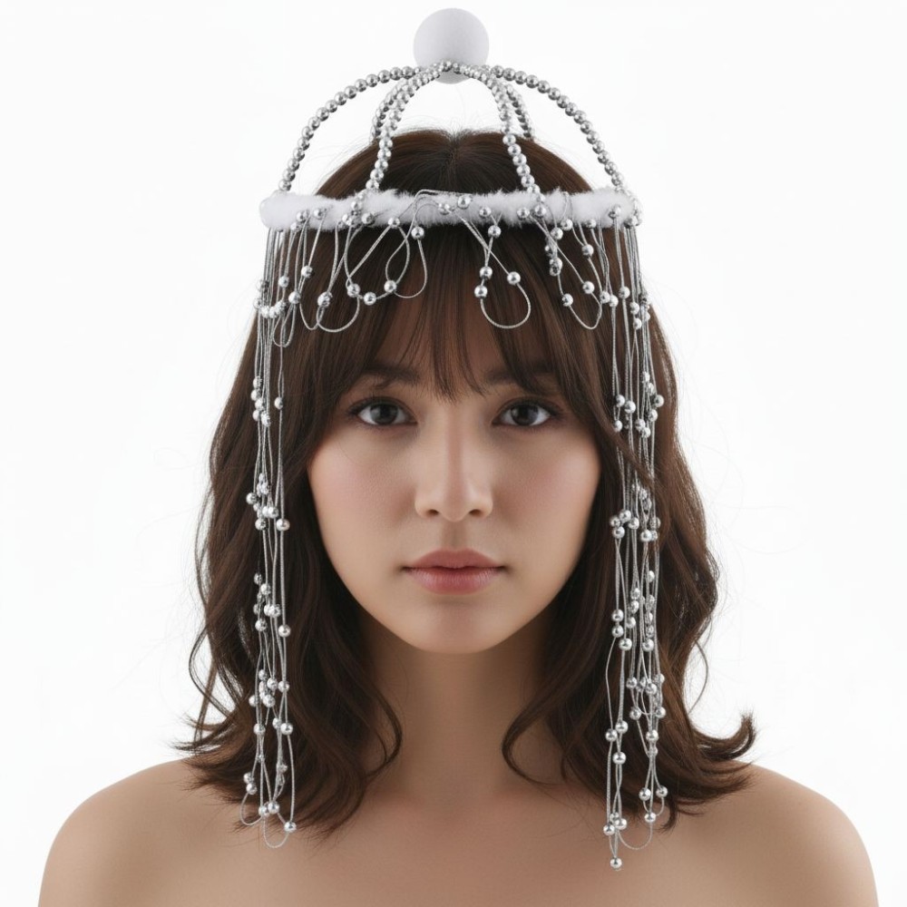 Karnevalový doplněk v podobě korunky se zlatými nebo stříbrnými korálky do vlasů je perfektním způsobem, jak dodat každému kostýmu nádech elegance a kouzla. Tento univerzální doplněk je ideální pro maškarní kostýmy jako princezna, mořská panna nebo tanečnice, ale skvěle se hodí i na stylové párty, kde chcete vyniknout a zazářit.
