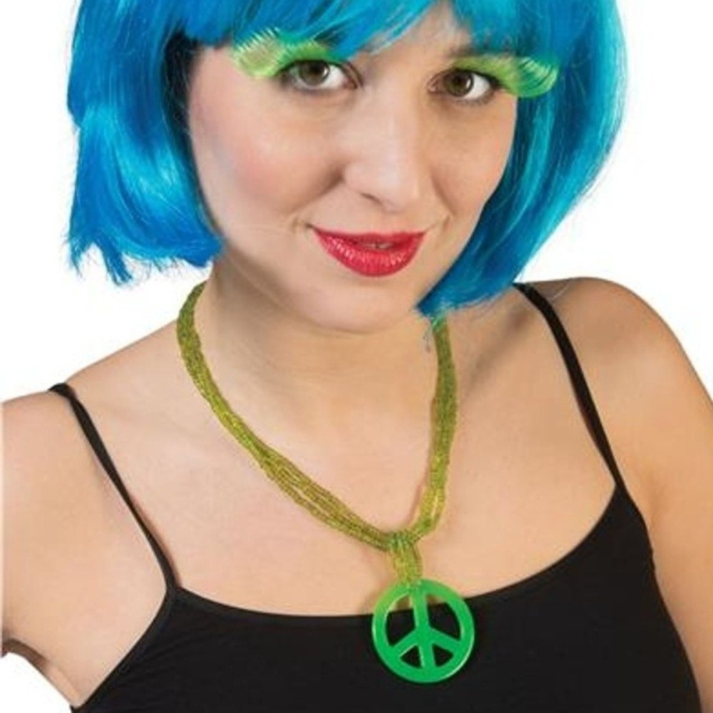 Korálkový zelený náhrdelník s přívěškem ve tvaru peace je ideálním karnevalovým doplňkem, který skvěle doplní kostým hipíka a dodá autentičnost na stylové hippie retro párty. Díky svému výraznému designu a symbolickému přívěsku přitáhne pozornost a podtrhne váš jedinečný styl.