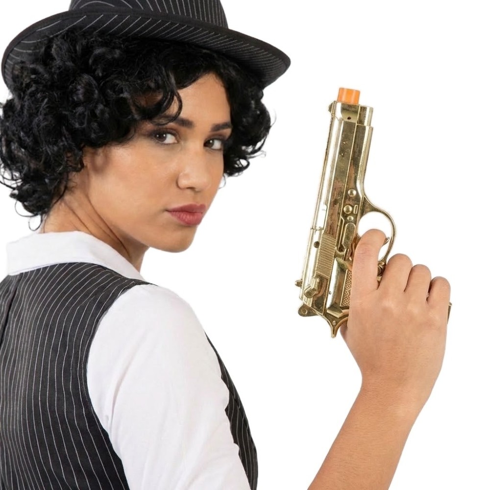 Zlatá plastová pistole o velikosti 22 cm je ideálním karnevalovým doplňkem pro každého, kdo chce zazářit na tematické akci. Tento detailně zpracovaný kousek skvěle doplní kostým mafiána nebo gangstera a dodá mu autentický vzhled.