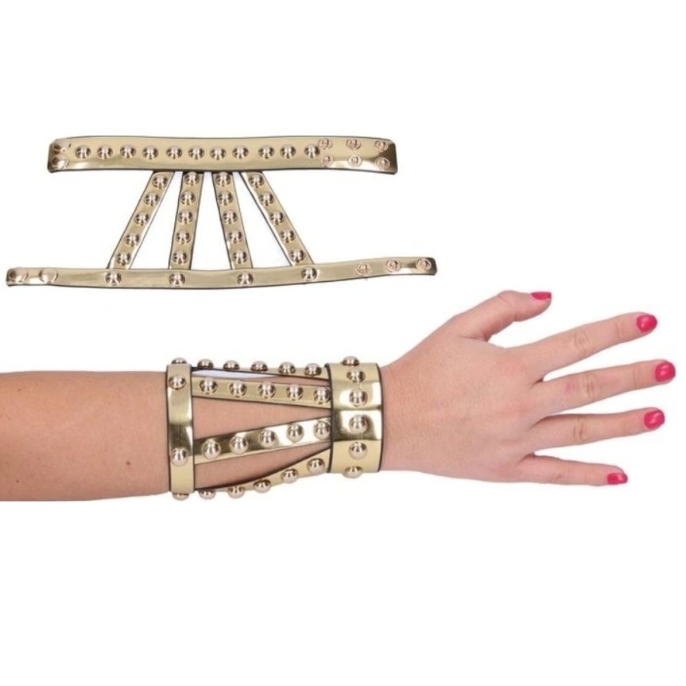 Páskový antický náramek ve zlaté barvě je ideálním doplňkem pro váš karnevalový kostým. Skvěle doplní vzhled Římana, Římanky nebo Kleopatry na antické párty.