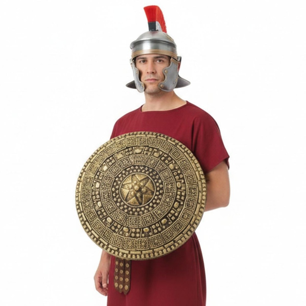 Krásně zdobený profilovaný kulatý štít je ideálním doplňkem pro maškarní kostýmy inspirované římskými vojáky či antickými hrdiny. S průměrem cca 45 cm se stane výrazným prvkem každé stylové antické párty.
