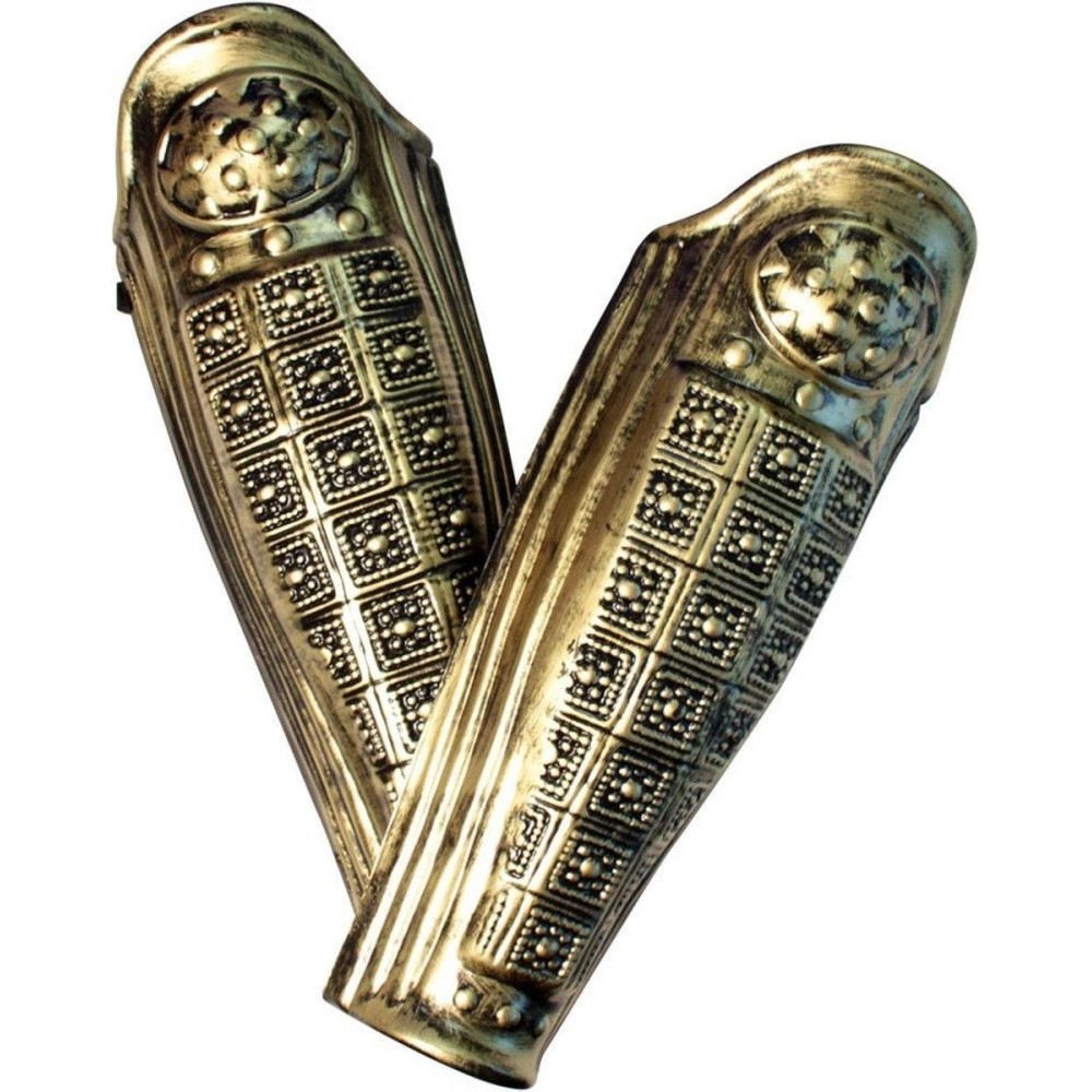 Zdobené zlaté profilované brnění na nohy je ideálním karnevalovým doplňkem pro kostýmy inspirované starověkým Římem či antikou. Vyrobeno z lehkého plastu, toto brnění v dospělé velikosti poskytuje pohodlí a autentičnost.