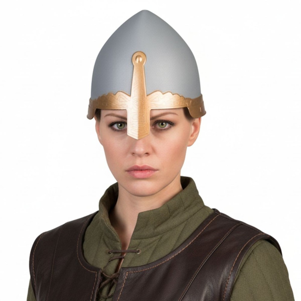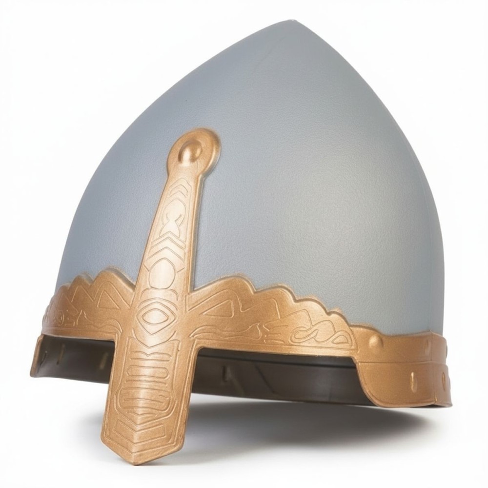 Historická přilba v šedé barvě, vyrobená z plastu, je perfektním doplňkem pro každého, kdo chce na karnevalu nebo tematické párty vyniknout jako rytíř, bojovník či středověký válečník. Tato přilba dodává vašemu kostýmu autentický středověký nádech a je ideální pro ty, kteří chtějí zaujmout svým historickým vzhledem.