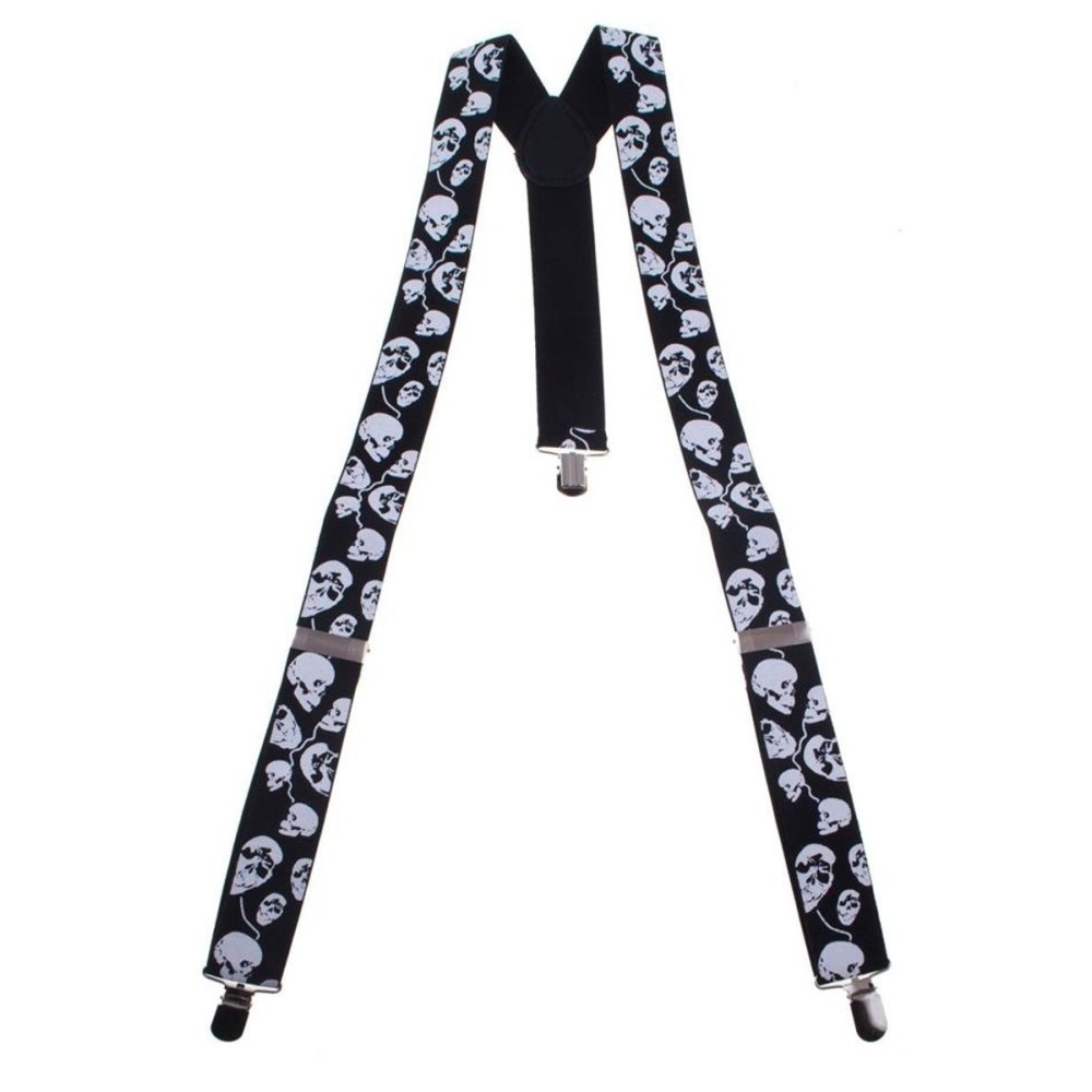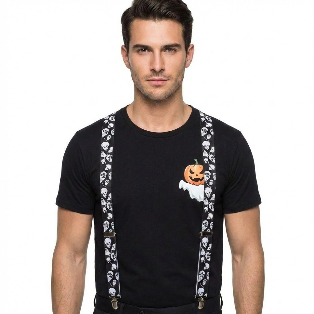 Černé kšandy s motivem bílých lebek jsou perfektním karnevalovým doplňkem, který dodá vašemu Halloween kostýmu autentický vzhled. Díky dospělé velikosti zajišťují pohodlné nošení a skvěle drží.