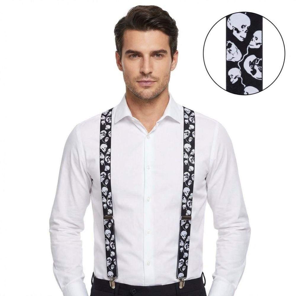 Černé kšandy šle s motivem bílé lebky jsou skvělým karnevalovým doplňkem, který dodá vašemu kostýmu ten správný šmrnc. Jsou navrženy v dospělé velikosti, což zajišťuje pohodlné nošení pro každého, kdo chce vyniknout na Halloween party nebo karnevalu.