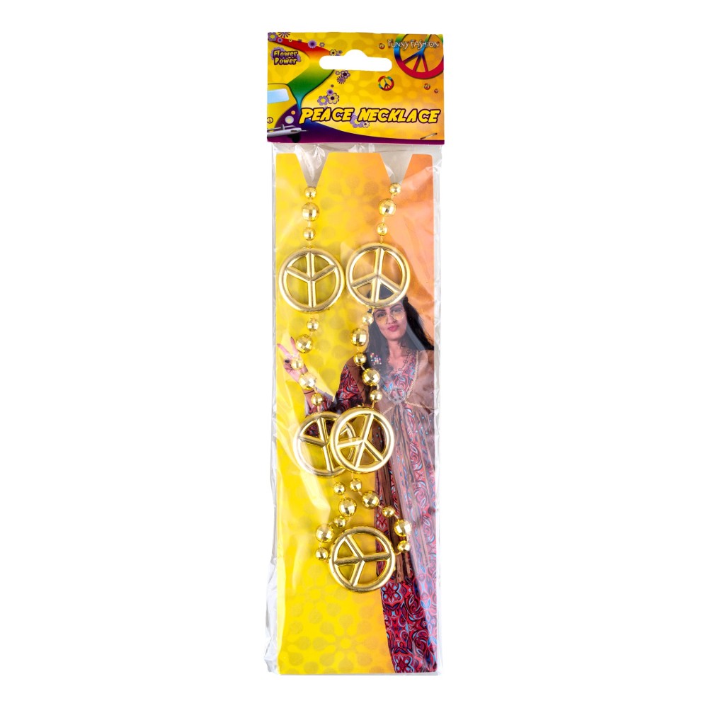 Karneval doplněk - plastový náhrdelník s peace hippies motivy ve zlaté barvě