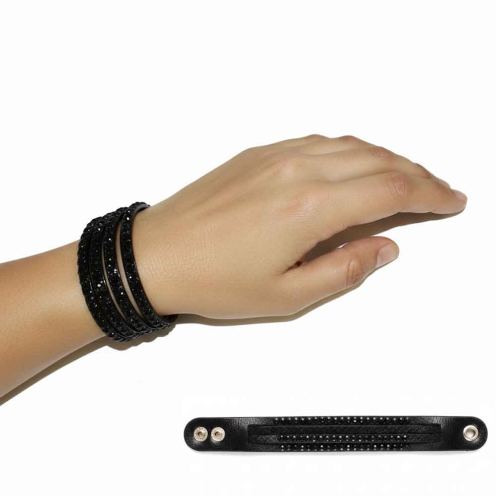 Černý páskový náramek s kamínky je elegantní karnevalový doplněk, který dodá lesk každému outfitu. Skvěle se hodí k retro kostýmům, kde podtrhne jejich stylový vzhled. Ideální je také na disco párty, kde zaručeně upoutá pozornost svou třpytivostí a elegancí.