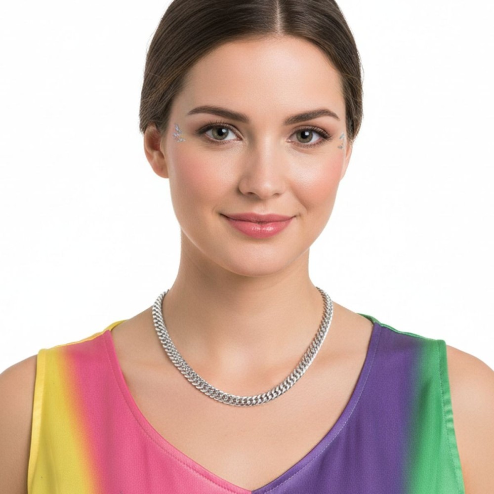Kovový náhrdelník řetěz ve stříbrné barvě je perfektním doplňkem pro každého, kdo chce svému maškarnímu kostýmu dodat šmrnc a eleganci. Díky své délce 66 cm je dostatečně univerzální, aby se dal použít při různých příležitostech, jako jsou karnevaly, tematické párty nebo jakékoliv jiné společenské akce, kde chcete vyniknout.