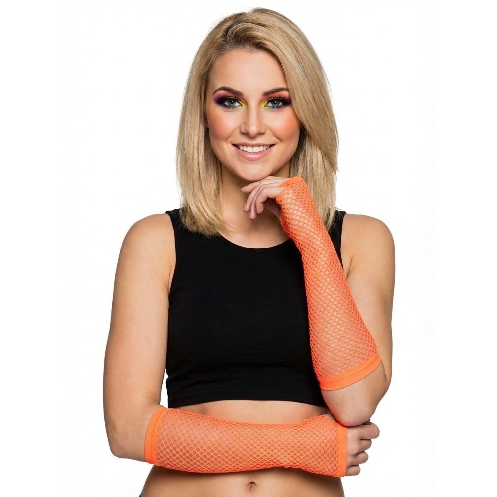 Síťované pružné rukavice v neonově oranžové barvě jsou ideálním doplňkem pro každou retro kostýmovou party. Jejich zářivá barva a pružný materiál dodají vašemu outfitu energii a styl.