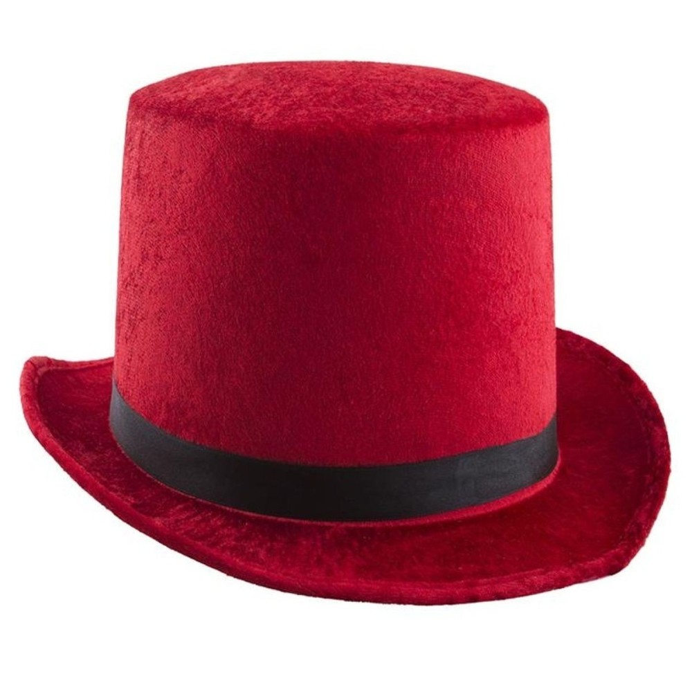 Sametový červený cylindr s černou stuhou a s vnitřním obvodem 59 cm je dokonalým doplňkem pro karnevalové kostýmy. Skvěle se hodí pro upíry, kouzelníky či elegány na retro párty.