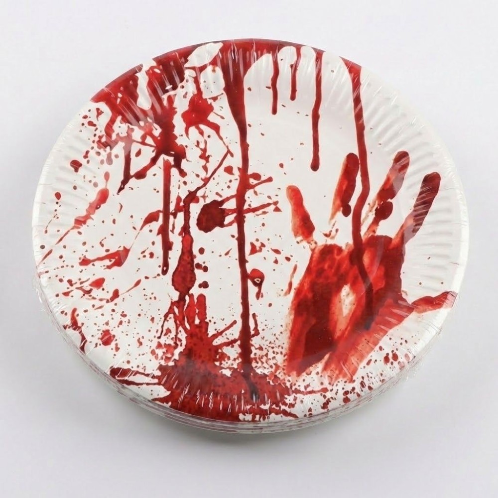 Tato sada párty nádobí jednorázových talířů tácků obsahuje 8 kusů s realistickými krvavými šmouhami, které skvěle doplní atmosféru hororové, Halloween nebo zombie párty. Talíře mají průměr 23 cm, což je ideální velikost pro servírování občerstvení a dezertů.
