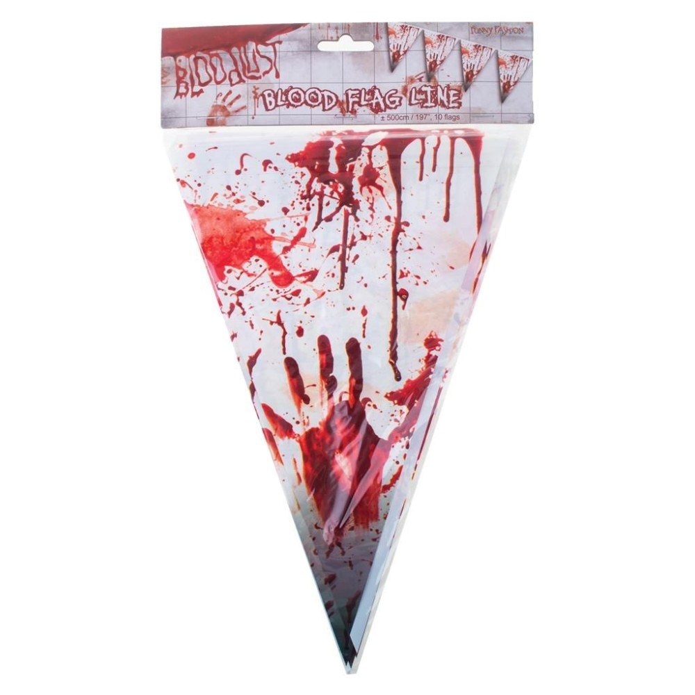 Plastová vlajková girlanda s motivem krvavých šmouh a cákanců je perfektní dekorací pro každou Halloween horor zombie párty. S celkovou délkou přibližně 5 metrů a deseti výraznými vlajkami o velikosti 28 cm snadno ozdobí jakýkoli interiér či exteriér. Girlanda je vyrobena z odolného měkkého plastu, což zajišťuje její dlouhou životnost a možnost opakovaného použití.