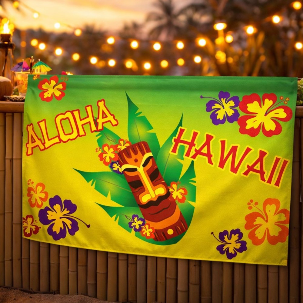 Velká barevná vlajka s motivem Aloha Havaj je ideální dekorací pro letní plážovou párty, která přinese exotickou atmosféru a radostné vibrace. S rozměry 150 x 90 cm se stane výrazným prvkem vaší výzdoby, který okamžitě zaujme každého hosta.