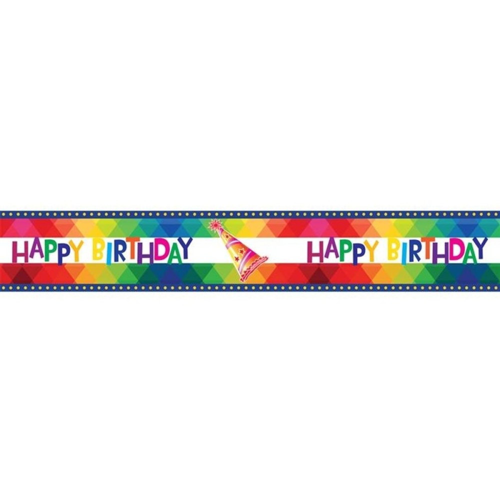 Plastová barevná dekorační páska s motivem "Happy Birthday" je perfektní pro ozdobení každé narozeninové oslavy. Díky rozměrům 610 x 8 cm je ideální pro větší prostory a snadno se instaluje na různé povrchy.