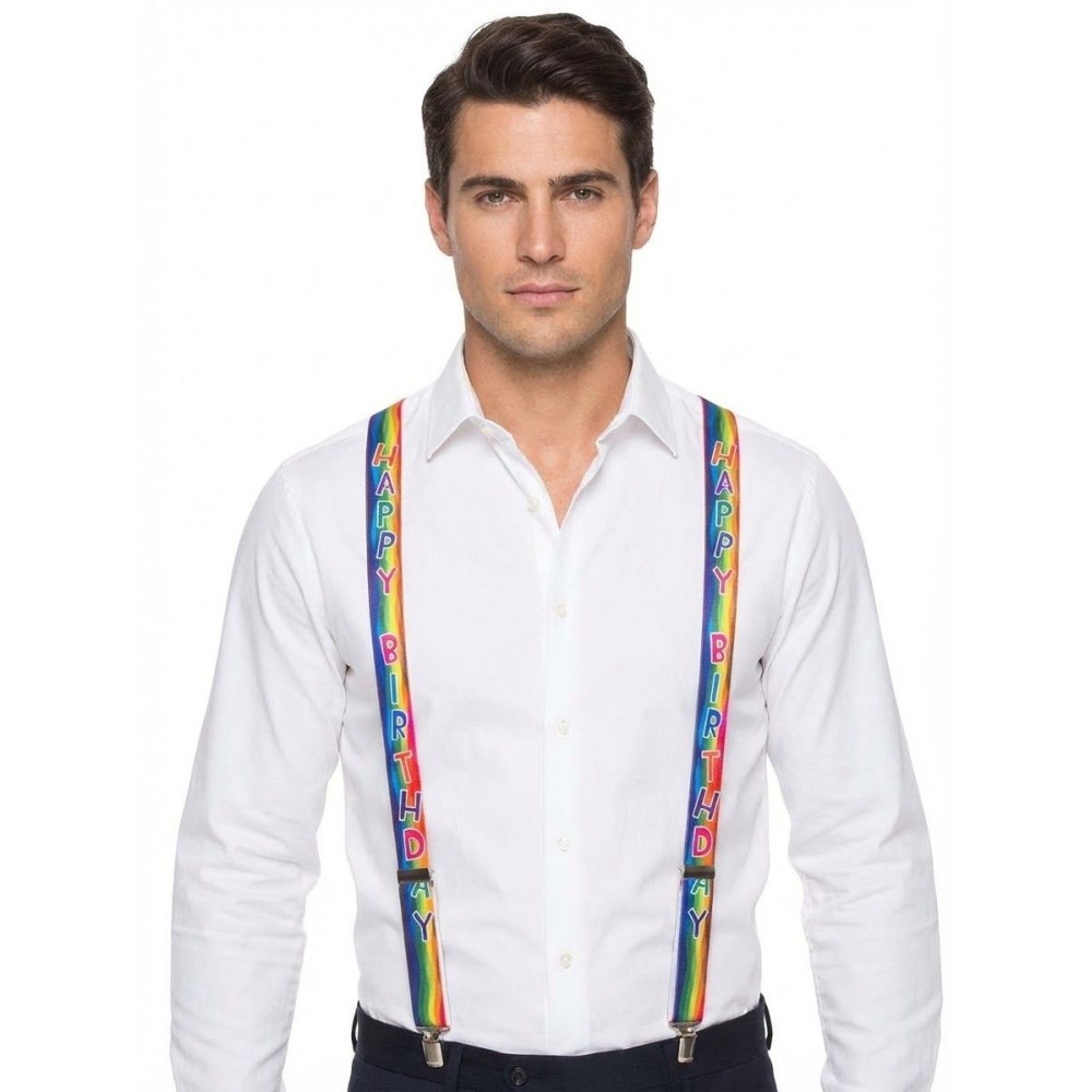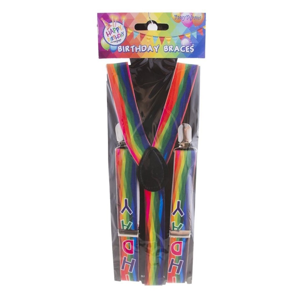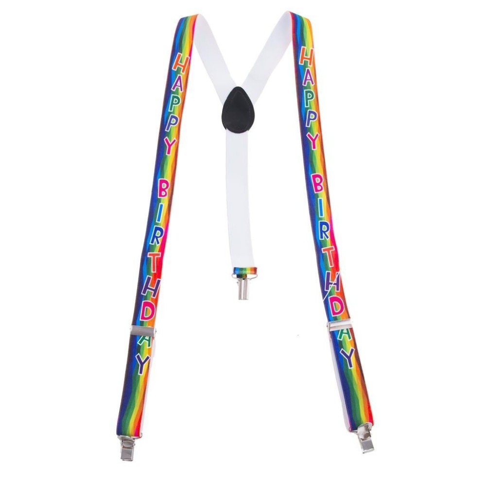 Barevné kšandy s nápisem Happy Birthday jsou perfektním party doplňkem, který dodá oslavenci super vzhled.