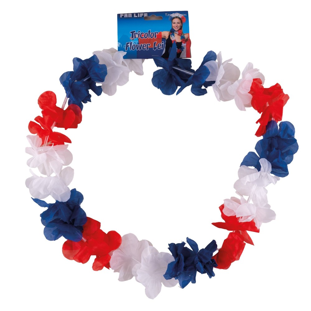 Havajský květinový věnec v českých barvách je skvělým doplňkem pro každou sportovní nebo karnevalovou akci. Tento věnec dokonale doplní váš maškarní kostým a přidá národní hrdost na sportovní párty.