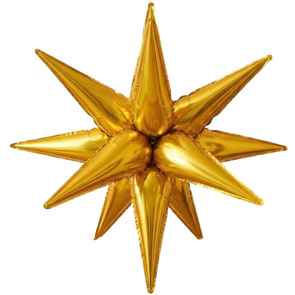 Prostorová foliová nafukovací balónková dekorace s 12 rameny, velikostí 67 cm a ve zlaté barvě, je ideální dekorací pro každou stylovou party nebo narozeninovou oslavu. Perfektně se hodí i na Vánoce nebo novoroční oslavu, kde přidá slavnostní atmosféru.