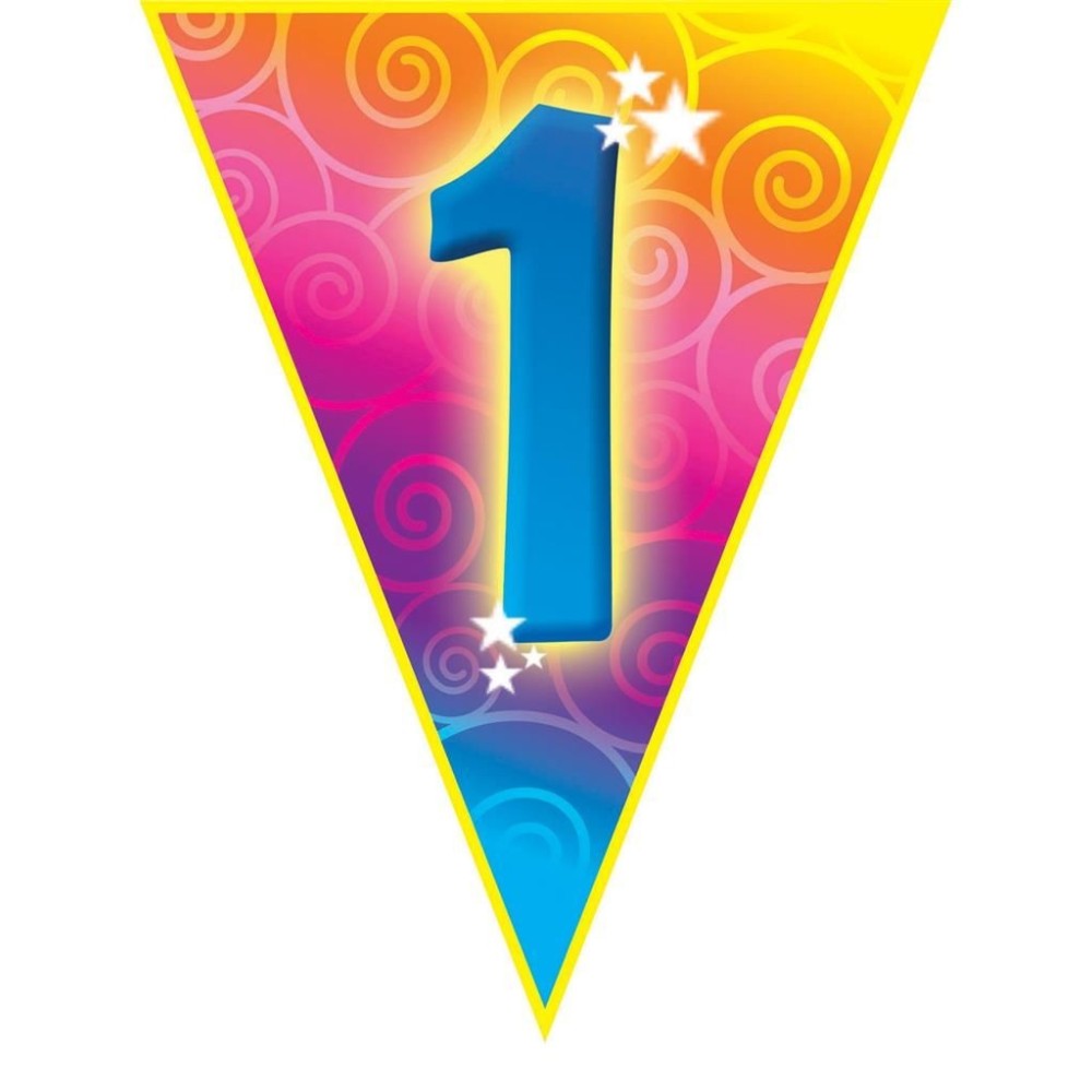 Plastová barevná narozeninová girlanda s velkým číslem 1 je ideální dekorací pro oslavu nebo narozeninovou párty. S délkou přibližně 5 metrů a deseti vlajkami o velikosti 28cm skvěle ozdobí každý prostor.