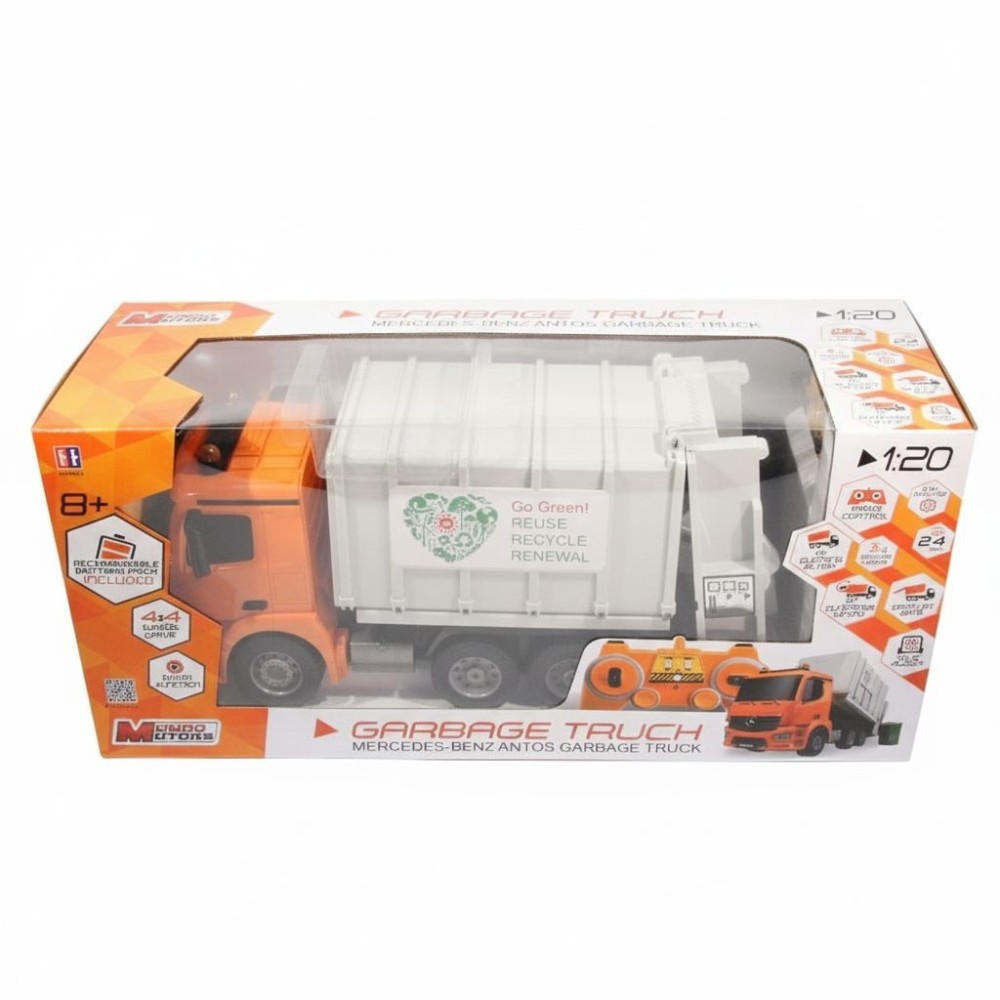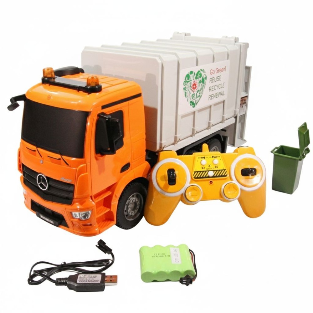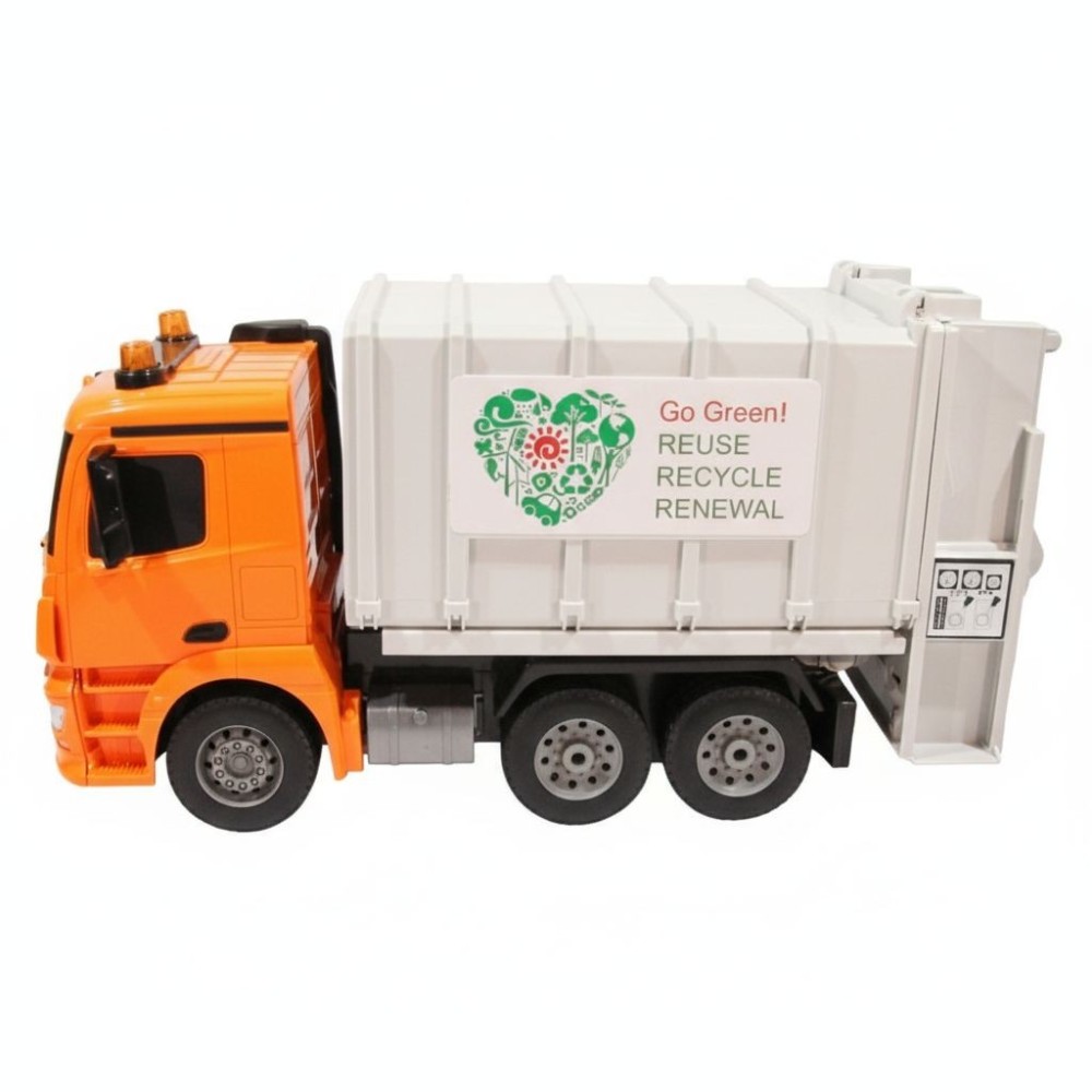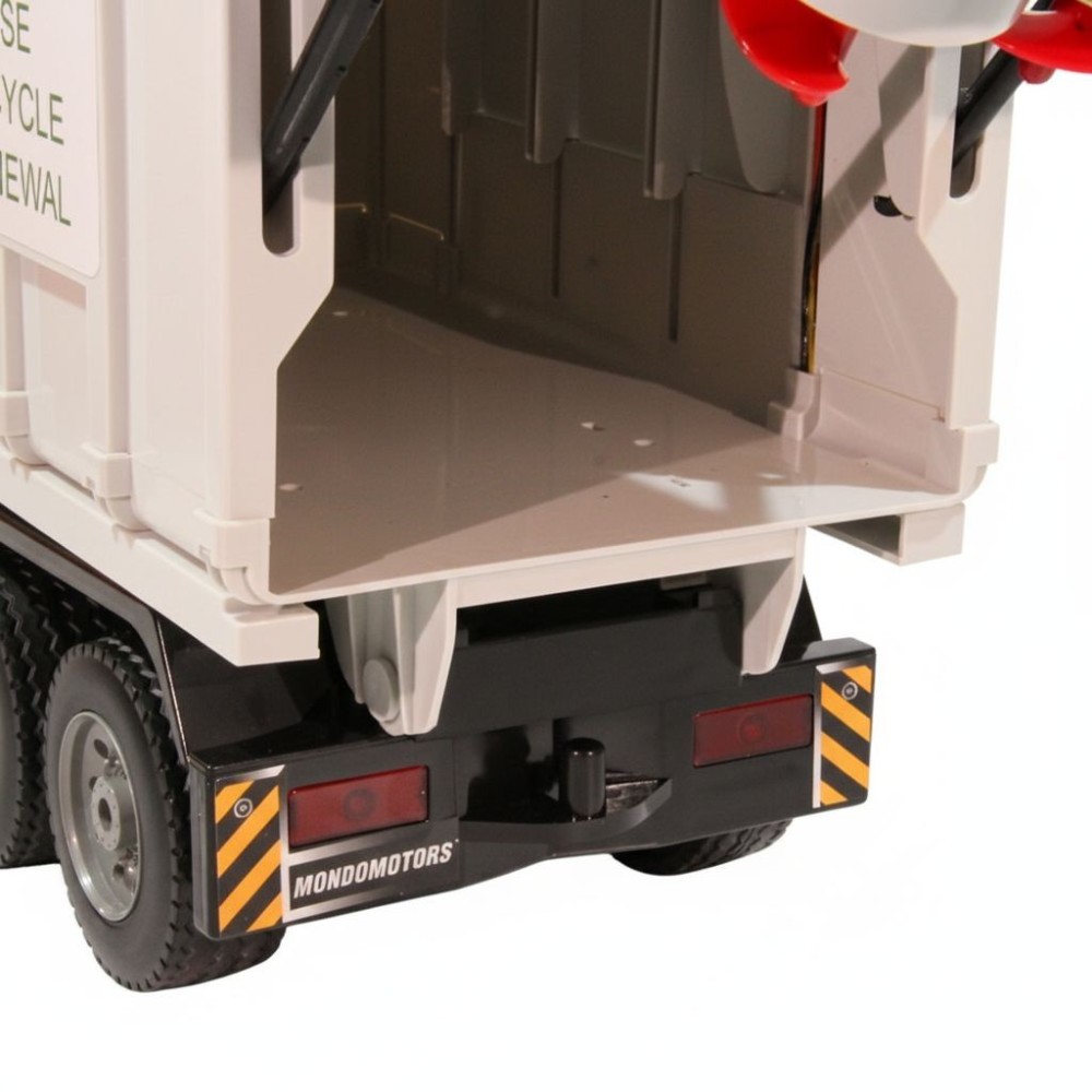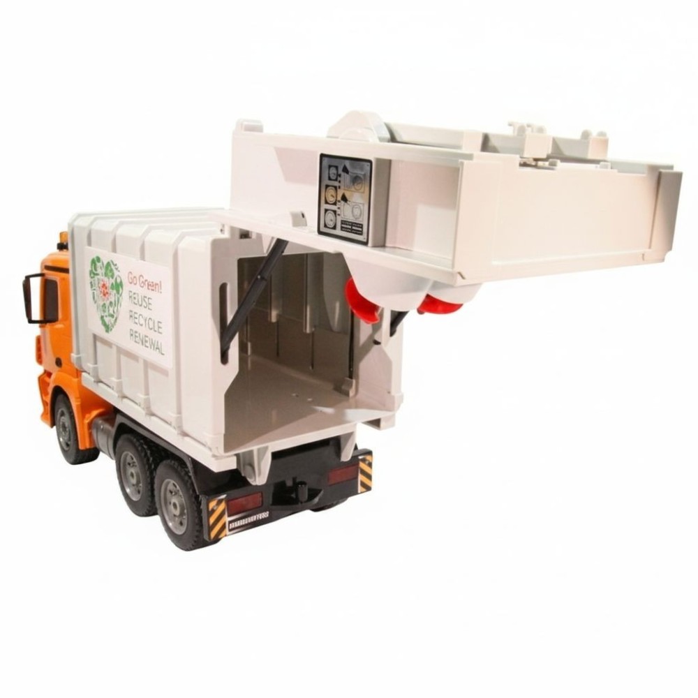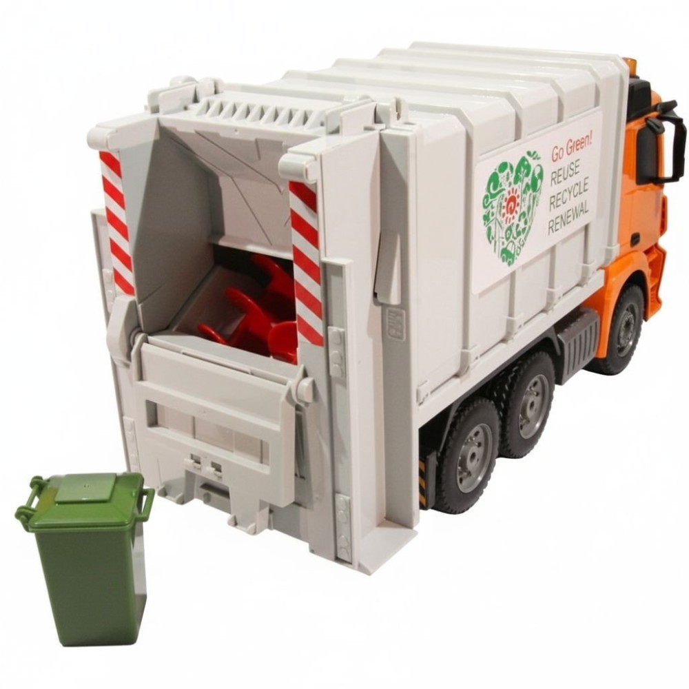 Auto nastartujete, jezdí dopředu, dozadu, do stran, brzdí, zvednete popelnici a vysypete obsah dovnitř, pomocí šneků odpad dostanete do korby auta, svítí mu světla a troubí klakson, to vše snadno řídíte pomocí dálkového ovládání, ručně navíc můžete zvednout a otevřít korbu